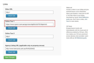 - On realestate.com.au or your CRM, enter the copied URL into the External Links section